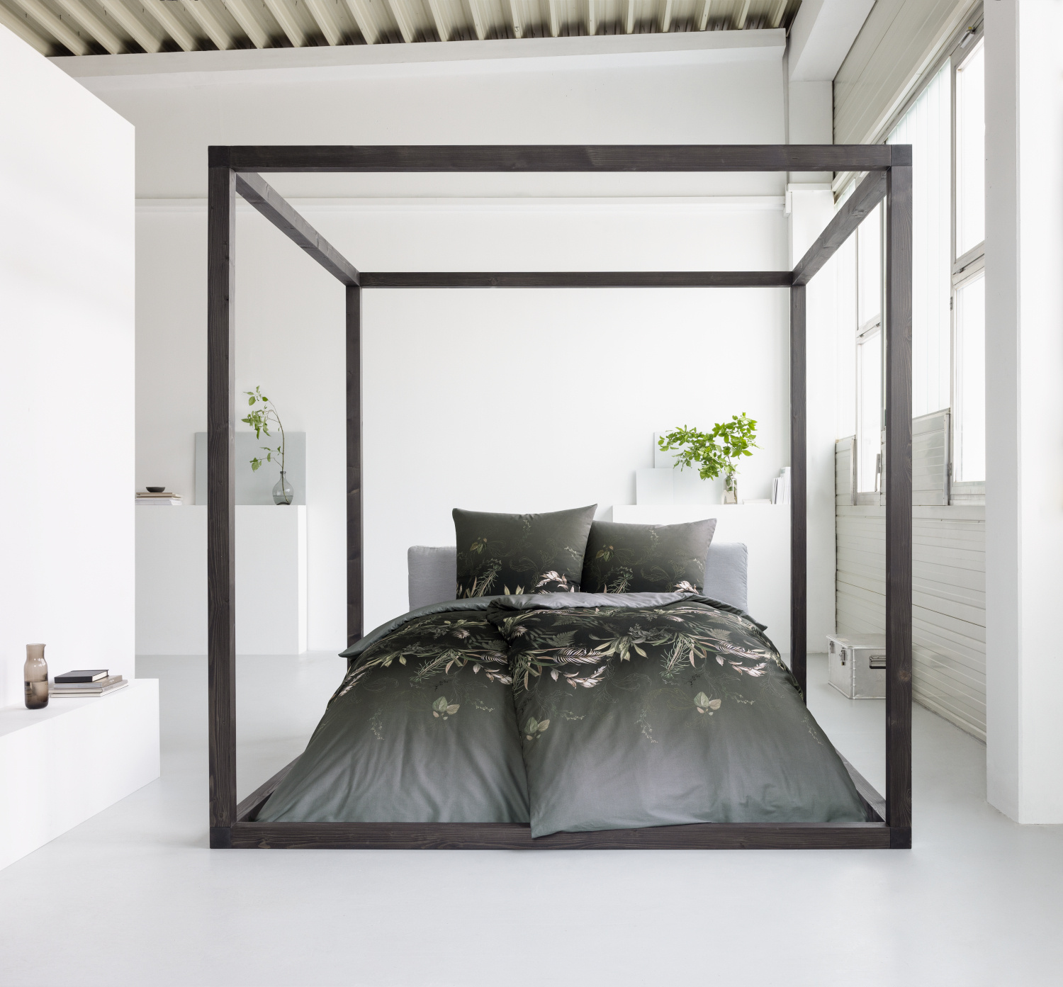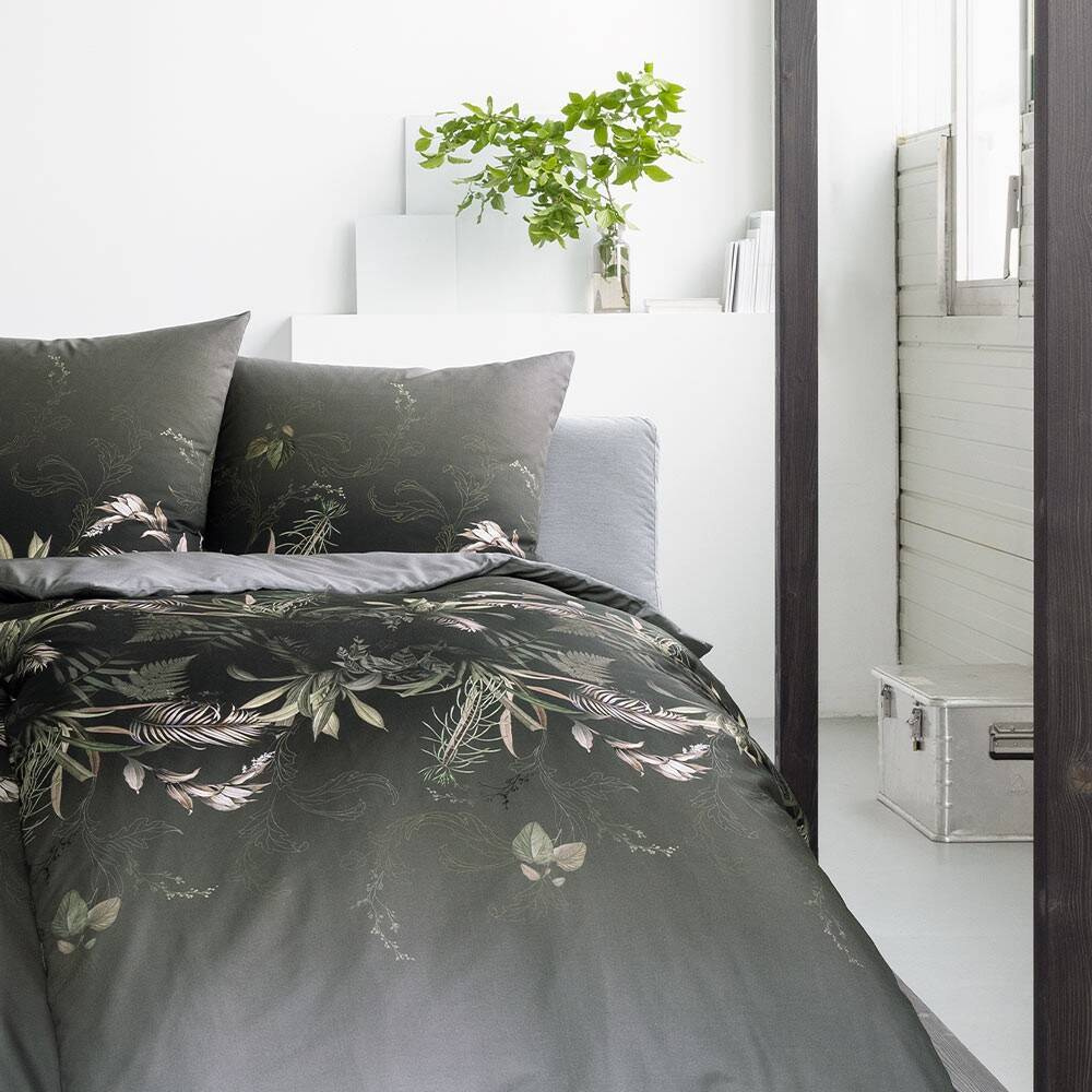 Pościel 160x200 2x70x80 4796 antracyt 920 Jungleleave mako satyna